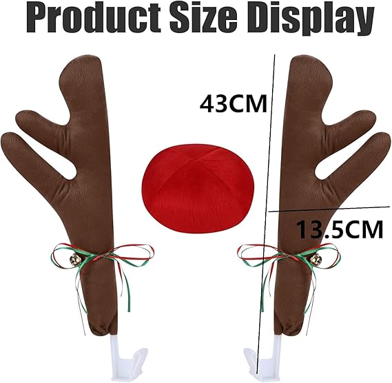 Fabricado con tela felpada de alta calidad y estructura interna resistente, el kit soporta lluvia, sol y viento sin deformarse ni perder color. Además, los cascabeles agregan un toque mágico y festivo al conducir.